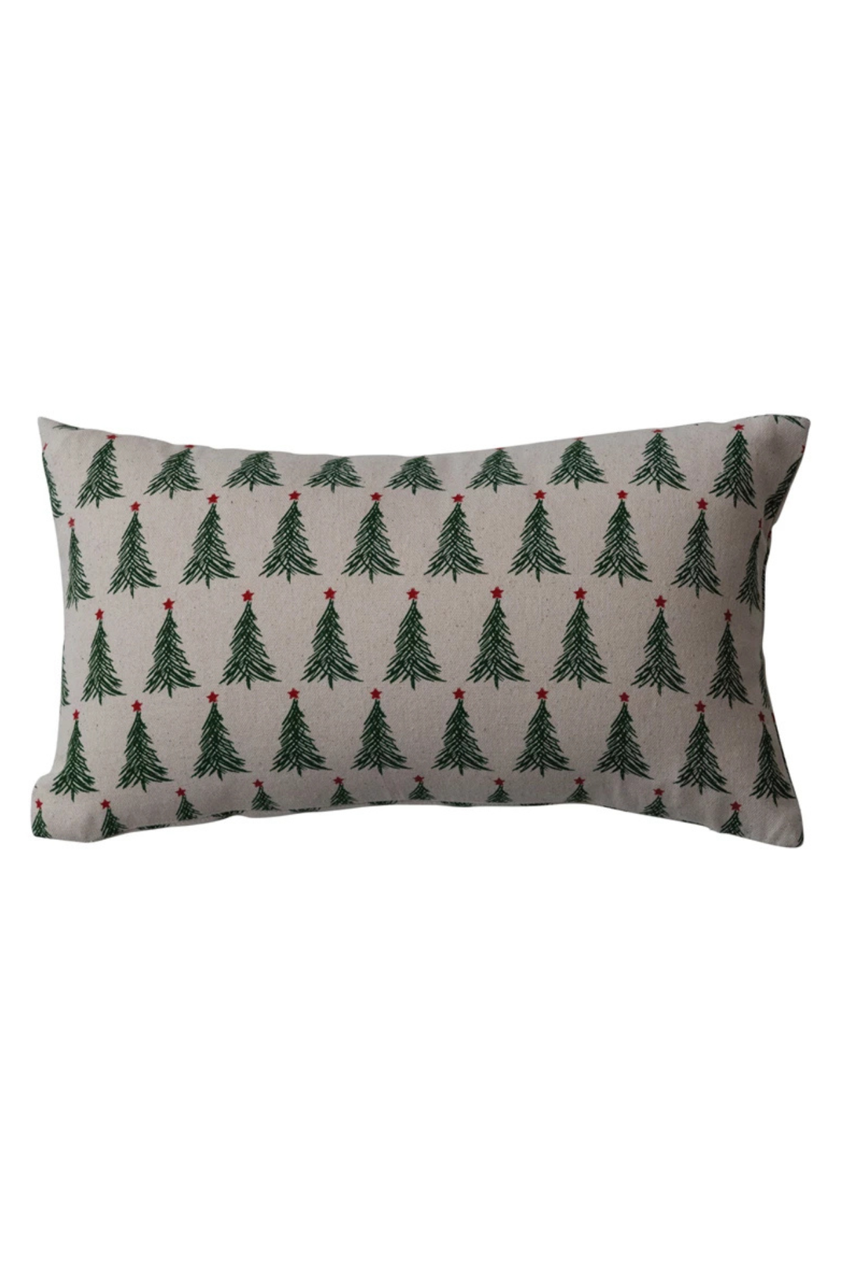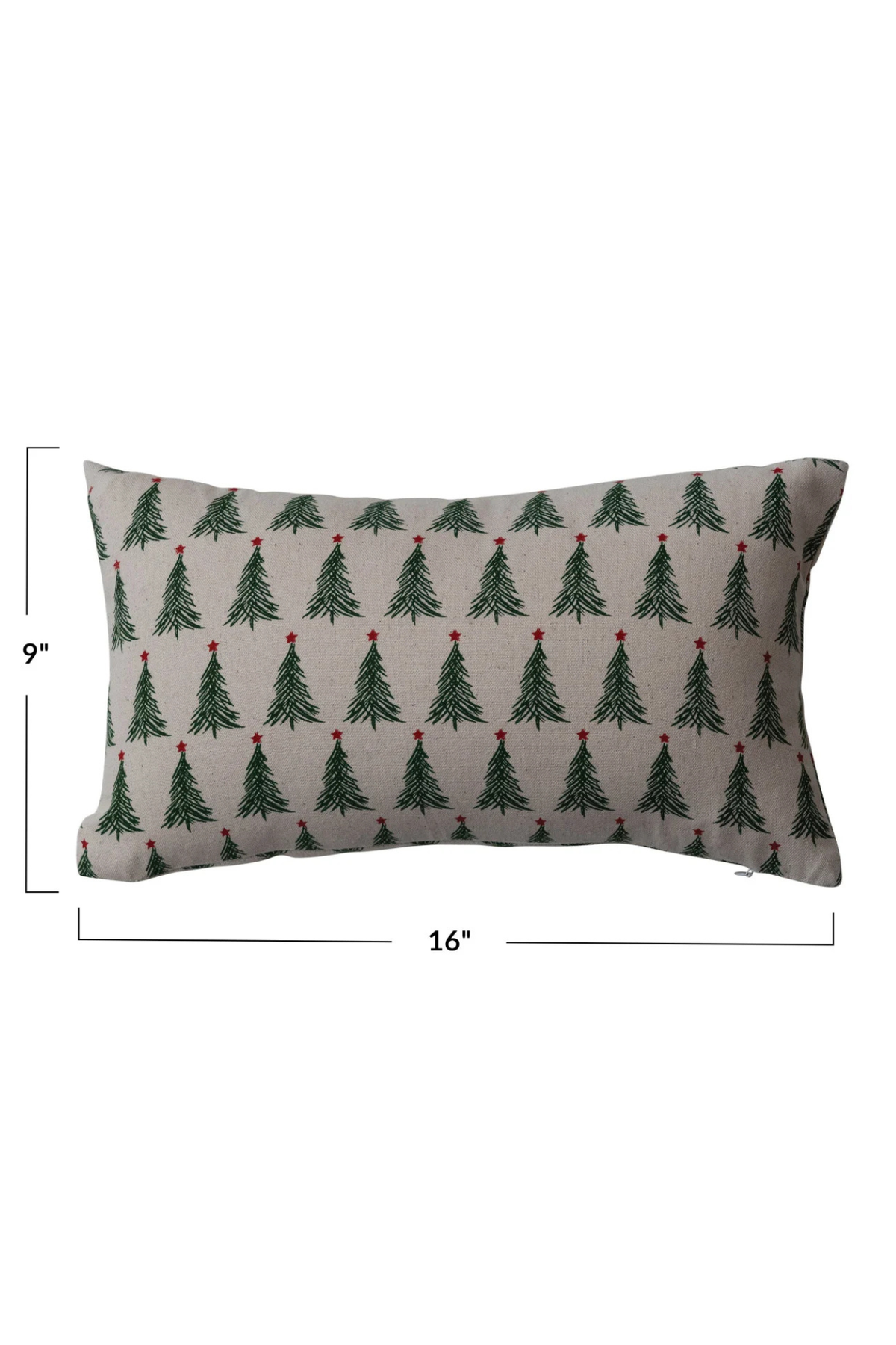 Regular price $35.00 Save $-35.00This Lumbar Tree Forest Pillow brings classic holiday charm with its stonewashed cotton fabric featuring a festive tree design. In cozy natural, green, and red hues, it adds rustic warmth to any room. Filled with soft polyester, it offers lasting comfort throughout the season. At 16 by 9 inches, this pillow is perfectly sized to enhance your holiday décor with subtle elegance.