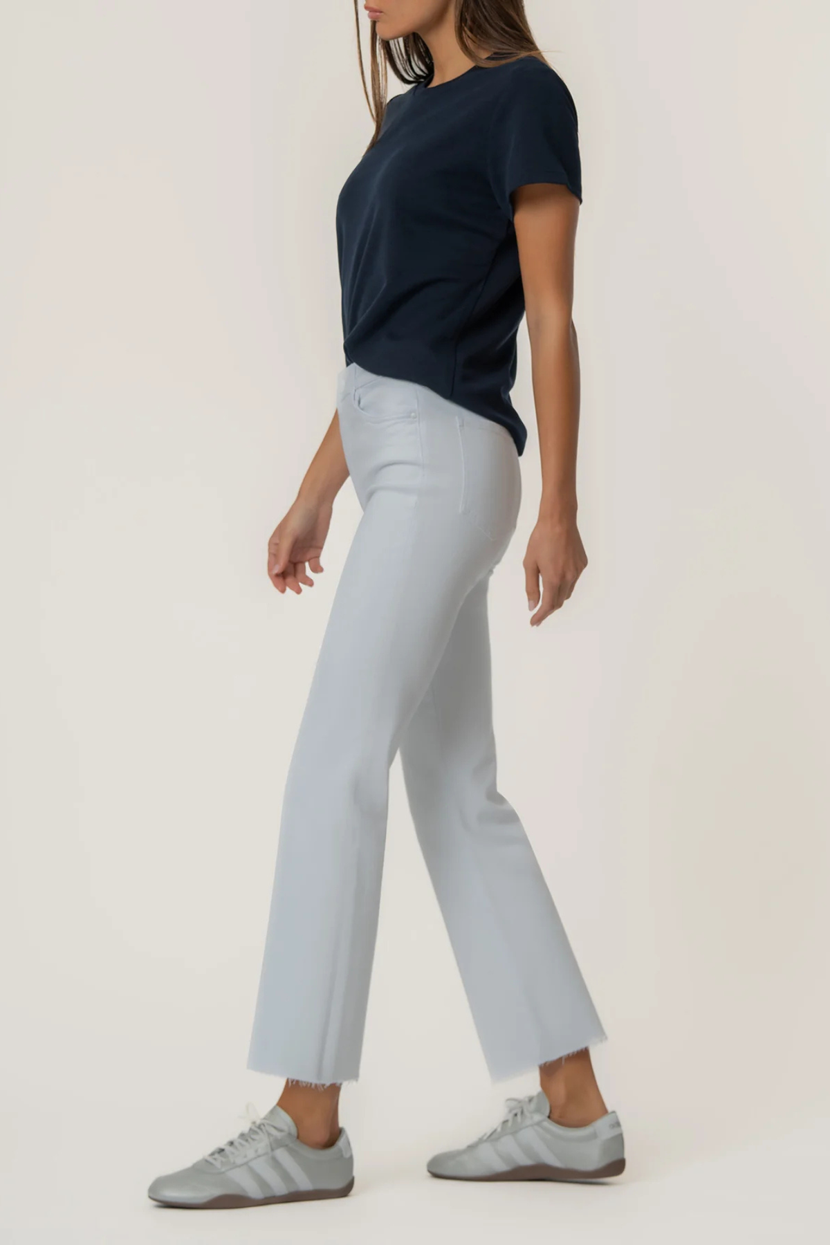 Elevate your everyday look with the Kelsey High Rise Ankle Flare in optic white. Crafted from stretchy fabric that moves with you, these jeans offer the perfect blend of comfort and flattering fit. The high-rise waistband provides confident coverage while the modern ankle flare silhouette adds contemporary edge. Clean, versatile optic white pairs effortlessly with any wardrobe, making these jeans a timeless essential for polished, casual style.