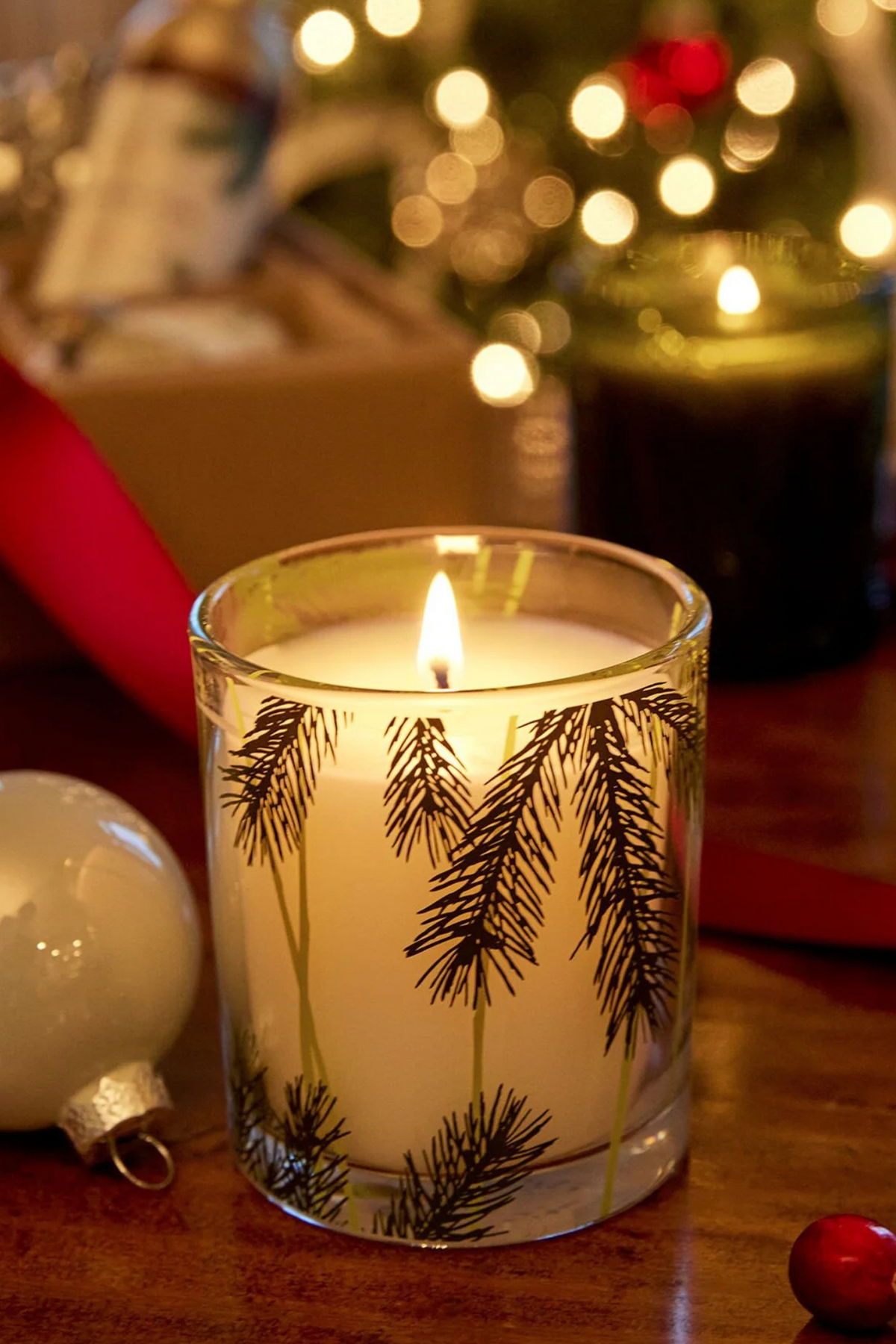 Pine Needle Design Glass Jar Candle