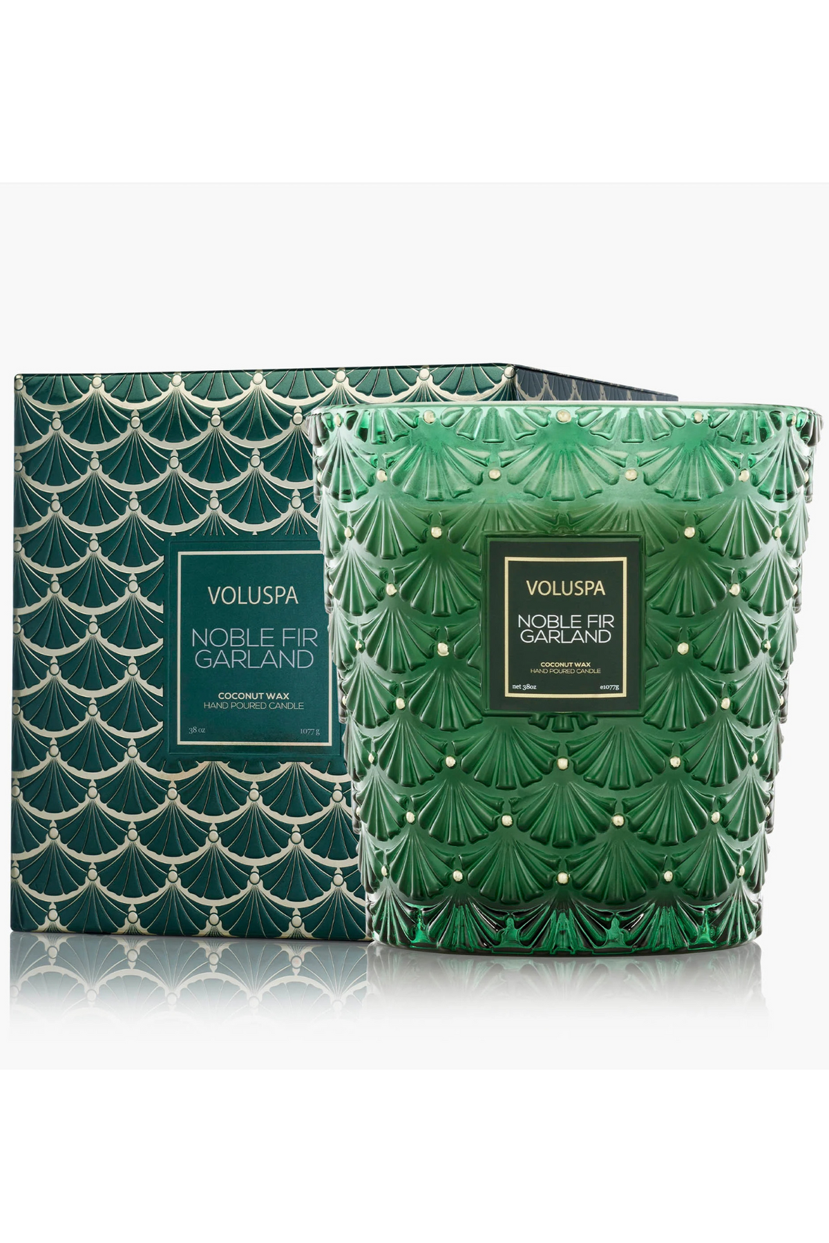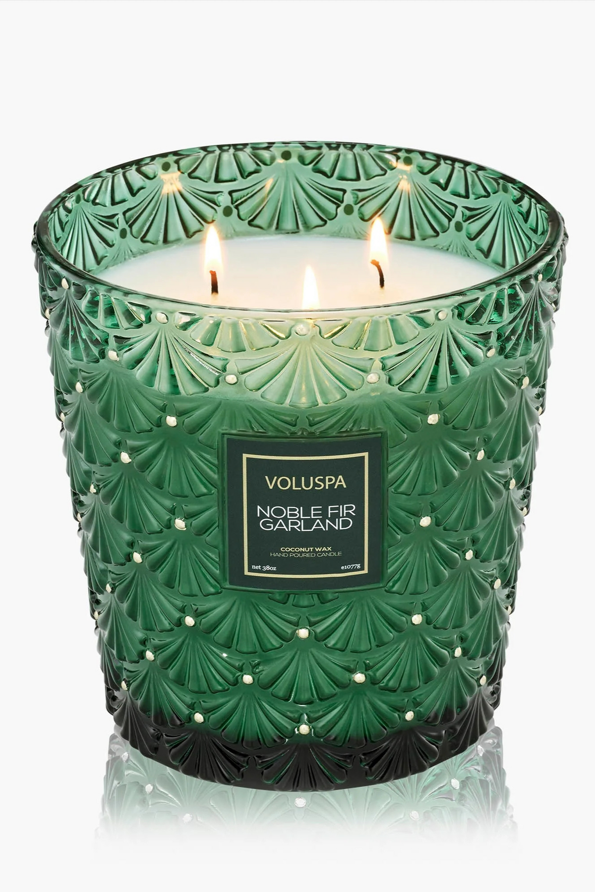Regular price $100.00 Save $-100.00Enjoy the rich, festive aroma of the Noble Fir Garland 3 Wick Candle. Housed in a 38 oz. embossed glass jar and presented in a decorative gift box, this candle features three wicks for an even fragrance throw lasting up to 80 hours. Handcrafted in the USA with Voluspa’s clean-burning coconut wax blend and natural wicks, it’s free from phthalates, parabens, and sulfates. Once finished, the elegant glass jar makes a perfect keepsake to treasure long after the candle is gone.
