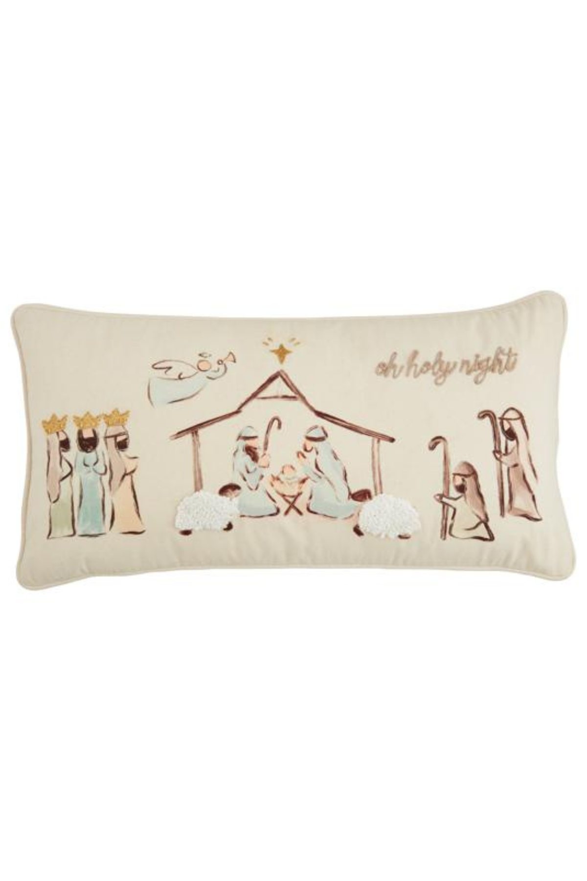 Regular price $45.00 Save $-45.00The Nativity Pillow brings timeless holiday charm to your home with its beautifully embroidered canvas design. Featuring an intricate nativity scene rendered in fine detail, this 12" x 24" lumbar pillow combines comfort with sophisticated style. The self flange border adds an elegant finishing touch that complements any décor. Perfect for sofas, beds, or accent chairs, this versatile piece celebrates the season while adding warmth and character to your living spaces.