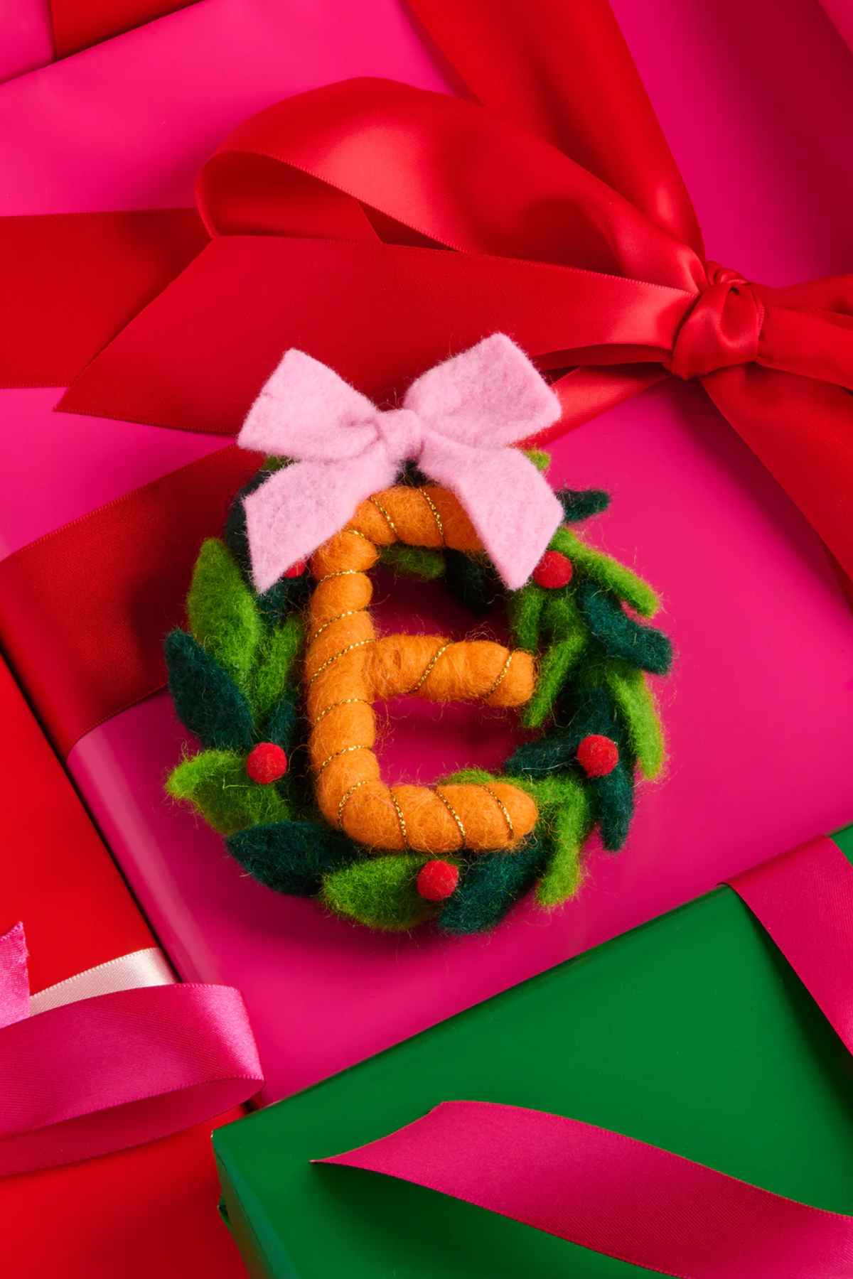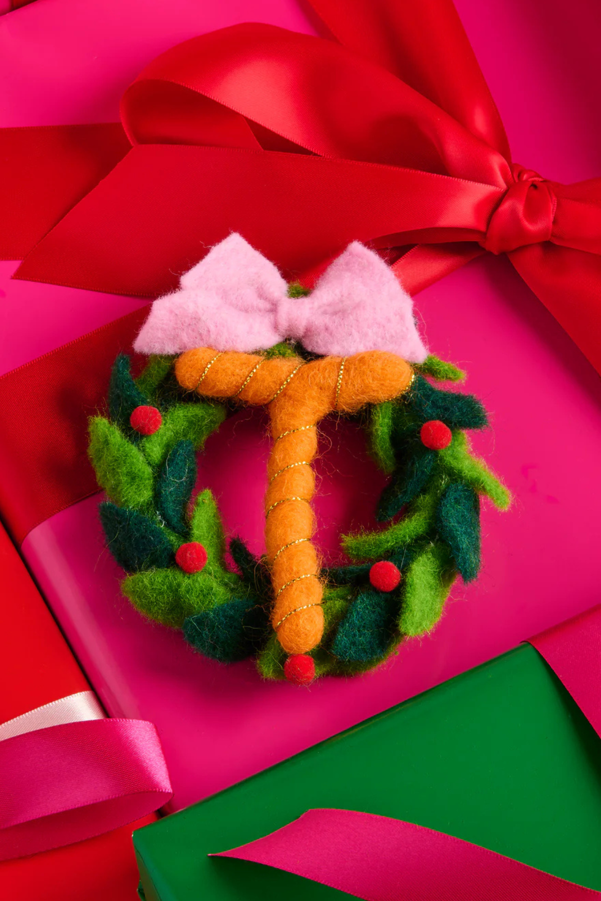 Regular price $24.00 Save $-24.00Add a cheerful touch to your holiday decor with the Initial Wreath Ornament. Topped with a delicate bow, this ornament adds a festive pop of color wherever you choose to display it—whether on your tree, a gift bag, or stocking. Celebrate the season with a charming accent that spreads warmth and personality throughout your home.