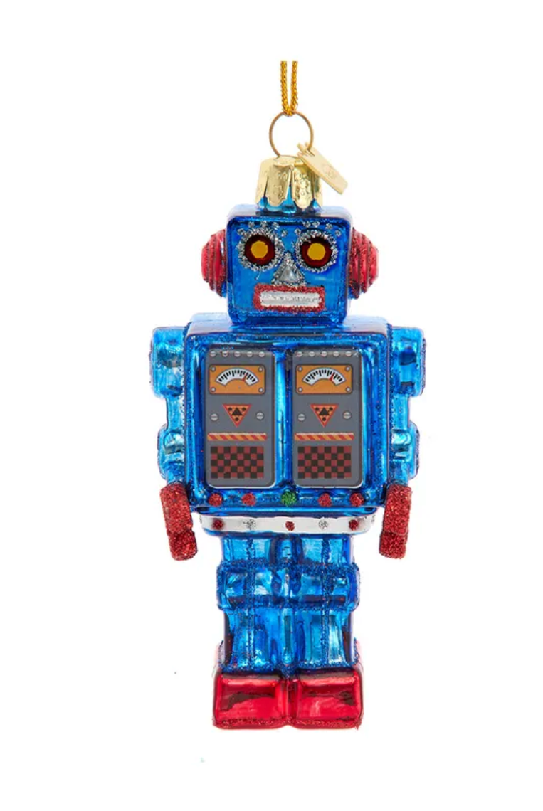 Regular price $24.00 Save $-24.00Add a touch of nostalgia and whimsy to your holiday decor with Kurt Adler's Noble Gems™ Glass Vintage Robot Ornament. This charming ornament features a beautifully crafted vintage robot design, complete with vibrant colors and intricate detailing that capture the essence of retro charm. Made from high-quality glass, this ornament reflects light beautifully, making it a stunning addition to your Christmas tree or festive displays. The playful character of this vintage robot is sure to evoke fond memories and spark conversations, making it a delightful piece for both children and adults.