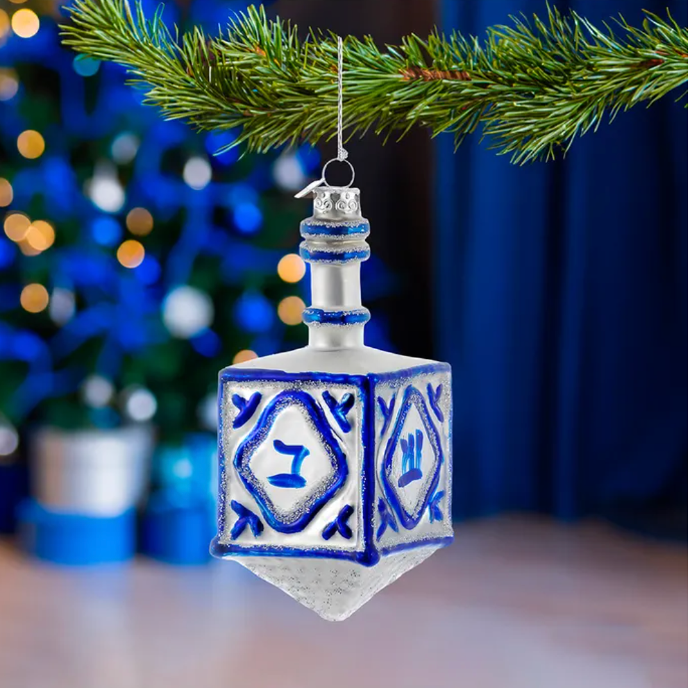 Regular price $24.00 Save $-24.00This Noble Gems™ dreidel ornament from Kurt Adler is an elegant addition to any Hanukkah decorations! This ornament features a classic dreidel design in a shimmery white with silver accents, complete with the four Hebrew letters, one on each side of the dreidel. Perfect for interfaith families who celebrate both Christmas and Hanukkah.