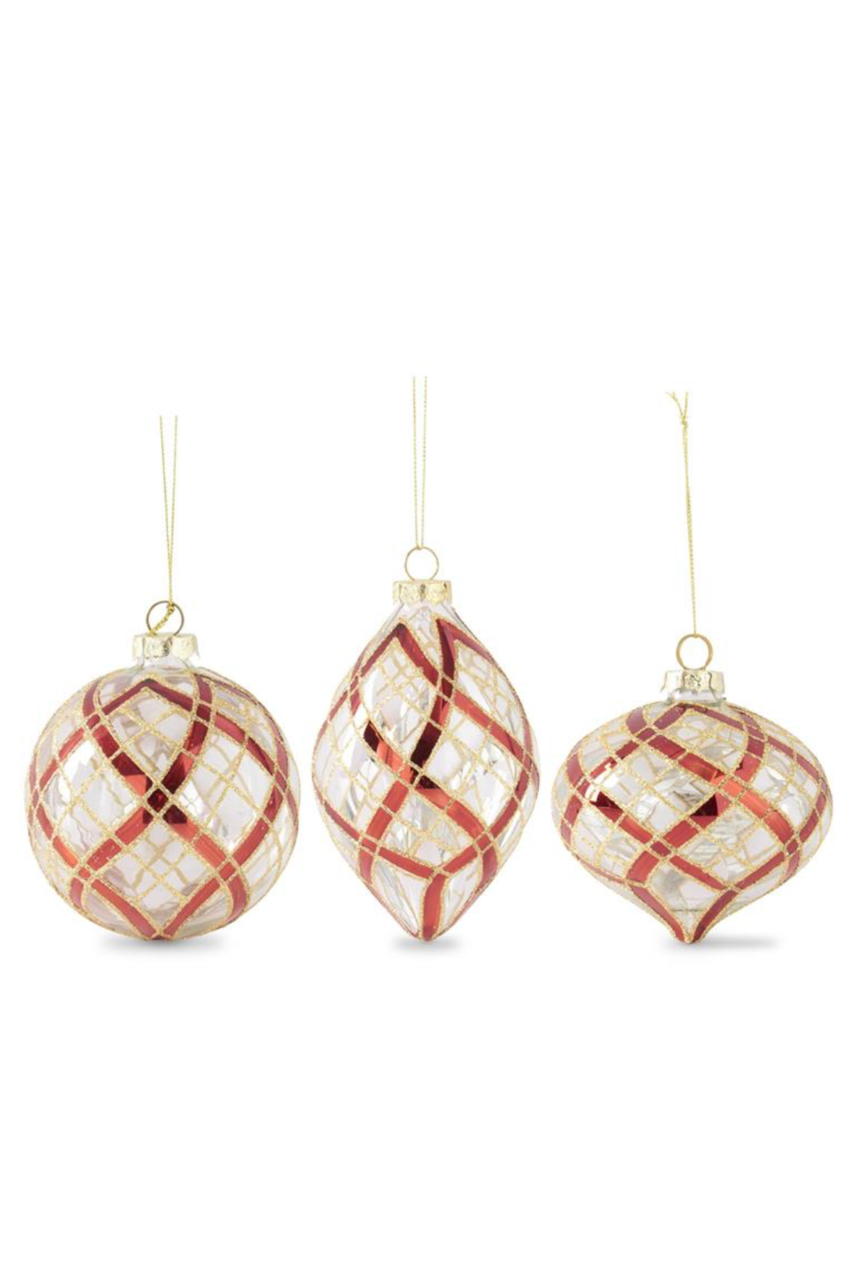 Regular price $18.00 Save $-18.00Elevate your holiday décor with these stunning clear glass ornaments featuring a glittered red and gold plaid design. The classic plaid pattern adds timeless elegance to any Christmas tree, while the shimmering glitter catches the light beautifully. Perfect for creating a coordinated, festive look or mixing and matching with your existing ornament collection. These versatile pieces bring warmth and sophistication to your seasonal displays.