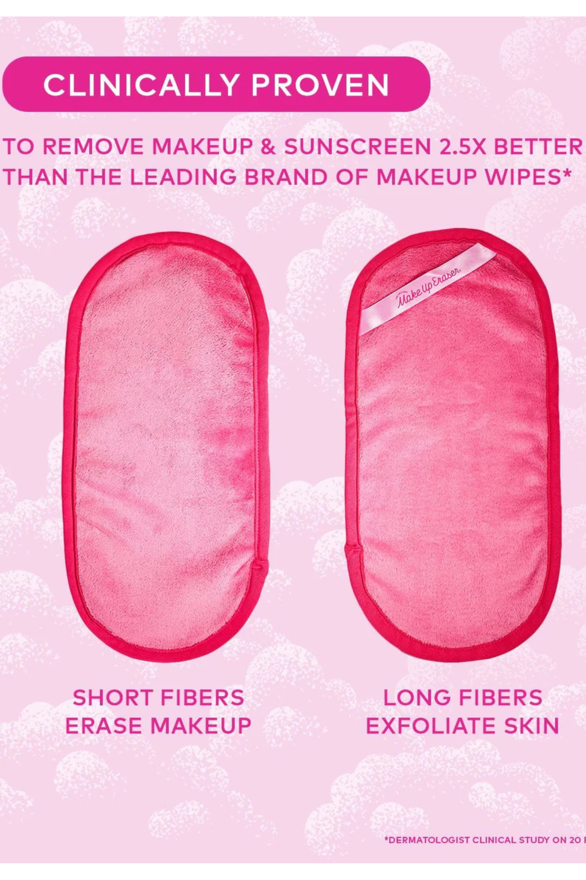 Regular price $20.00 Save $-20.00Erase all makeup with JUST WATER™ including waterproof. Our patented, water-activated, cloud-soft fibers gently & easily remove all makeup & sunscreen from pores. 2 in 1 benefit: one side erases makeup & one side exfoliates skin.