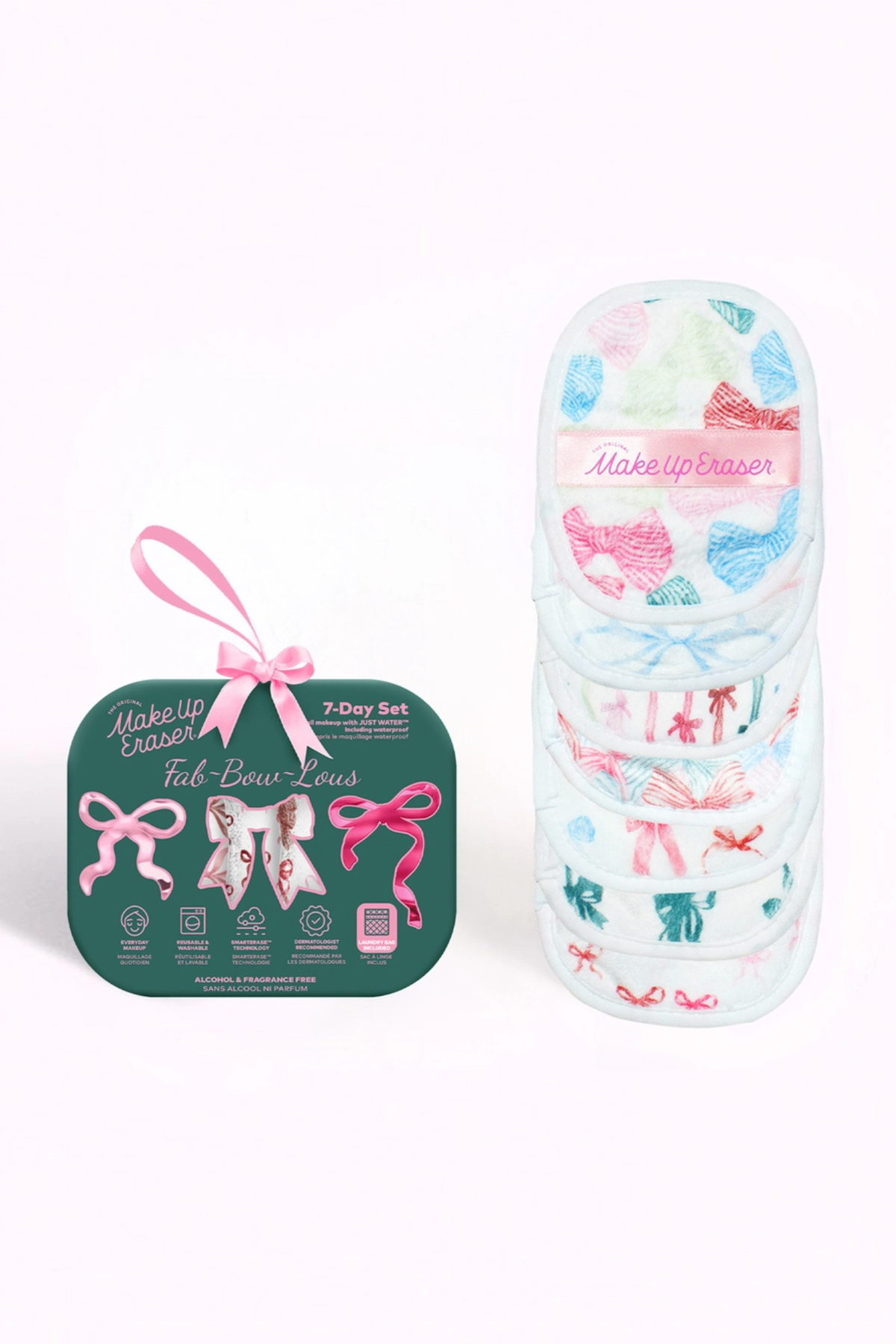 The Fab-Bow-Lous MakeUp Eraser removes makeup 2.5 times more effectively than leading wipes while being gentle on sensitive skin. Its non-irritating, non-drying formula is safe for eyelash extensions and oil-free, making it an ideal addition to your sustainable beauty routine.